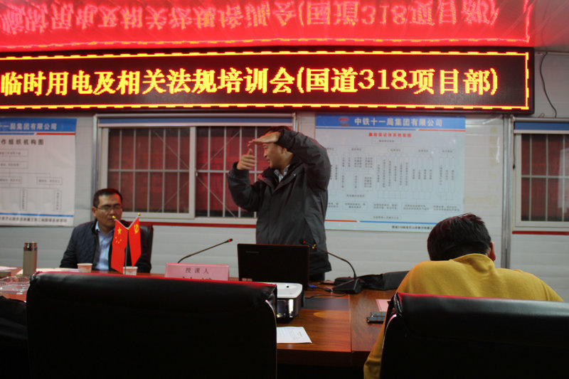 西藏芒康訊: 2019年10月25日,中鐵十一局集團(tuán)國(guó)道318項(xiàng)目部開(kāi)展了“安全技術(shù)教育培訓(xùn)會(huì)”和“現(xiàn)場(chǎng)臨時(shí)用電及相關(guān)法規(guī)培訓(xùn)會(huì)”,此次培訓(xùn)會(huì)由集團(tuán)公司安全總監(jiān)劉斌同志授課,業(yè)主指揮長(zhǎng)楊永靖同志參會(huì)交流,項(xiàng)目經(jīng)理張?jiān)ね局鞒謺?huì)議,項(xiàng)目部全體職工參加了此次培訓(xùn)。