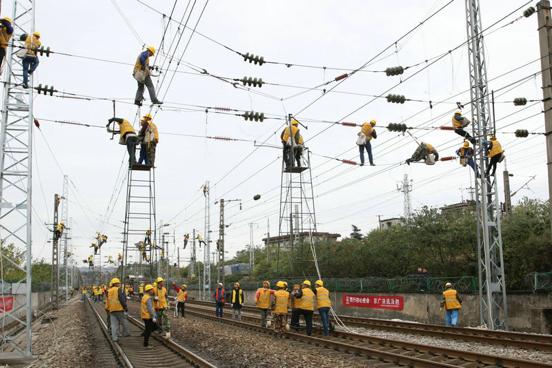 11月18日14點40分,京廣線I場至田心垂停天窗施工結(jié)束,一組組嶄新的軟橫跨懸掛在股道上方,列車平穩(wěn)通過,京廣電化改造工程重點工序--軟橫跨更換的序幕,在各級人員的通力合作下打響了第一槍。