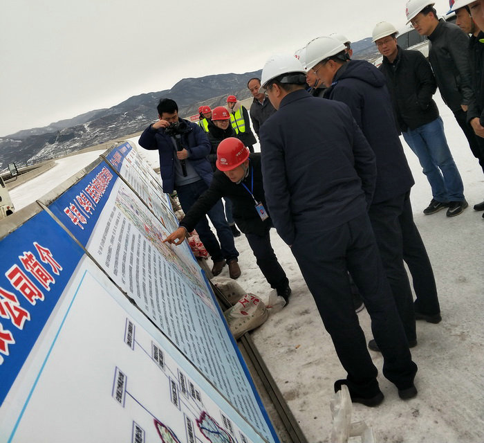 趙書(shū)記一行參觀項(xiàng)目部展板 趙書(shū)記指出,嚴(yán)冬時(shí)節(jié),天氣寒冷,工作人員在天寒地凍的環(huán)境下始終堅(jiān)守崗位,為保證項(xiàng)目建設(shè)質(zhì)量、安全做出了積極的努力,付出了很多,他代表集團(tuán)公司向大家表示誠(chéng)摯的慰問(wèn)和感謝。