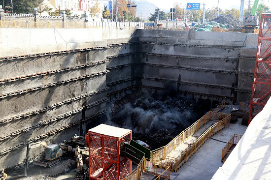 基坑最后一次爆破的施工,標(biāo)志著基坑開挖見底,極大地鼓舞了全體參建人員的士氣,不僅為后續(xù)主體結(jié)構(gòu)工程提供更多的施工工作面,更為主體結(jié)構(gòu)年底封頂提供保障。