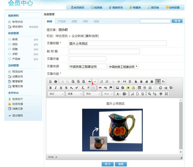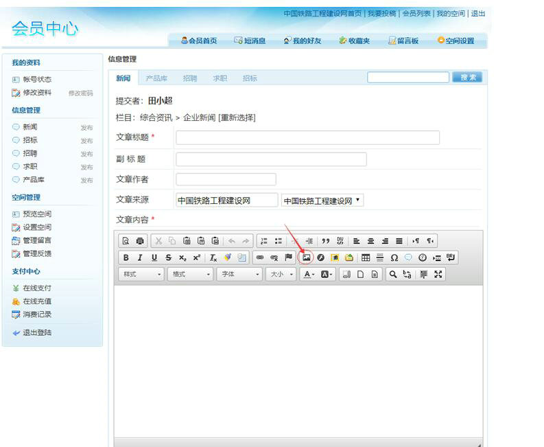 一、點(diǎn)擊文章內(nèi)容里編輯器的“圖像”圖標(biāo),如下圖: