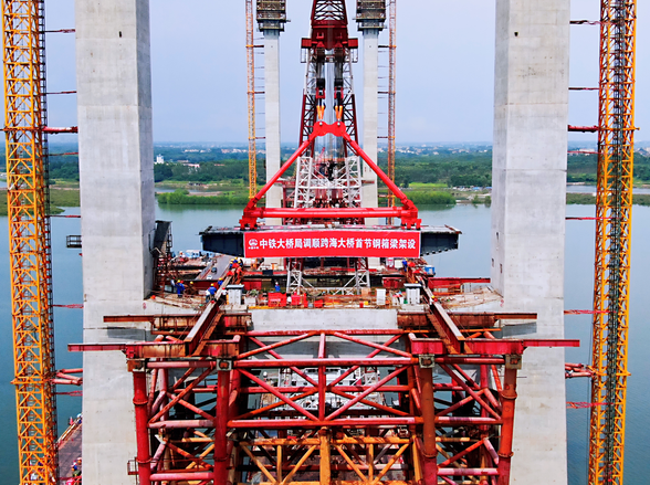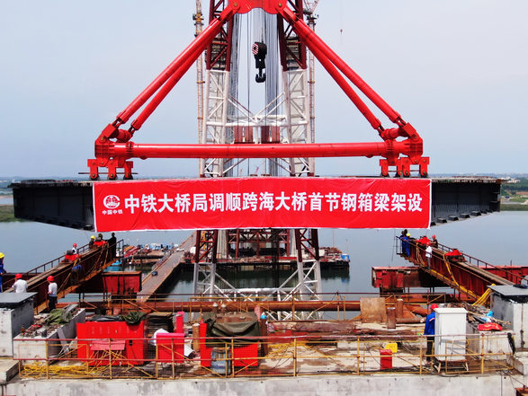 調(diào)順跨海大橋首片主梁成功架設(shè) 吹響“大干100天”沖鋒號(hào)