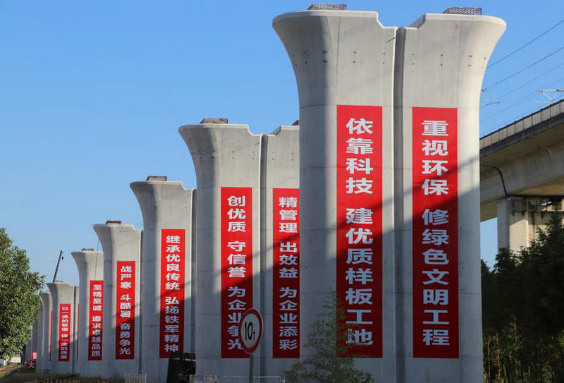 新建湖杭高鐵是2022年杭州亞運會重點配套工程,是全面實現(xiàn)浙江省1小時交通圈的關(guān)鍵性工程。由中鐵十一局集團承建的湖杭鐵路項目位于德清縣和余杭區(qū)境內(nèi),線路長21.643Km,項目以“精品工程、智能建造、綠色鐵路”理念為指導(dǎo)思想,現(xiàn)場2000余工人24小時全面組織施工,推行標準化“綠色”建設(shè)。