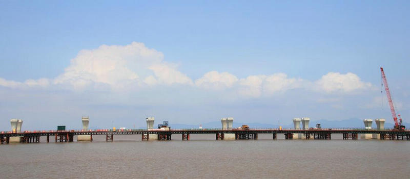 濱?;ネㄈL(zhǎng)9705米,由主線拼寬橋和4座金塘大橋拼寬橋和8座匝道橋組成,工藝復(fù)雜、工序繁鎖,且3次上跨、4次下穿日均車流量達(dá)6萬(wàn)輛的金塘大橋,海上作業(yè),施工難度大,潛在的安全隱患多,備受各方高度關(guān)注。在主線拼寬橋施工中,該項(xiàng)目部推出棧橋先行、樁基與承臺(tái)緊隨、墩身“壓軸”的分步驟、工序銜接緊密、多點(diǎn)擊破、全力合圍等“組合拳”,為贏得施工主動(dòng)、圓滿完成主線拼寬橋80座橋墩發(fā)揮了作用。與此同時(shí),項(xiàng)目部實(shí)行班子成員分工負(fù)責(zé)制,責(zé)、權(quán)、利與安全質(zhì)量、進(jìn)度產(chǎn)值和環(huán)保掛鉤,獎(jiǎng)罰嚴(yán)明,對(duì)履職不力、責(zé)任心不強(qiáng)者,調(diào)整其崗位,對(duì)其他管理人員也如此。其次,在每季度勞動(dòng)競(jìng)賽總結(jié)評(píng)比中,按照競(jìng)賽方案,組織部門負(fù)責(zé)人以上領(lǐng)導(dǎo)對(duì)各施工隊(duì)進(jìn)行打分,排在前5名的單位給予重獎(jiǎng),凡完不成任務(wù)者,將受到重罰。