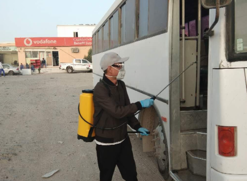 2、中鐵十八局集團(tuán)卡塔爾分公司防疫人員對(duì)車輛進(jìn)行消毒(楊國輝攝)