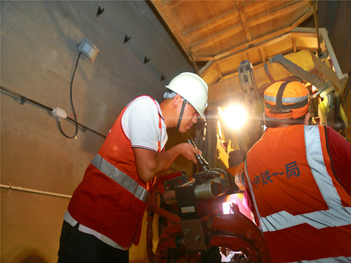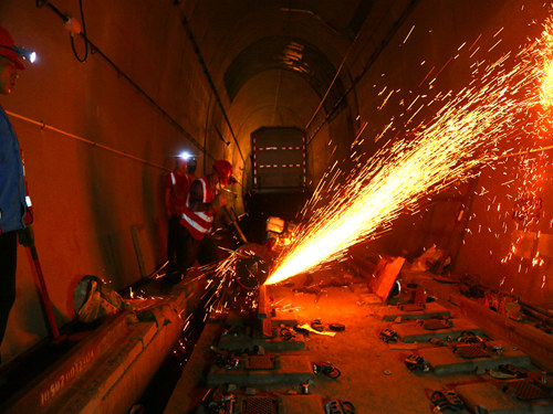 (譚帥)7月6日清晨7時許,在渝懷鐵路涪秀二線在建的新大田坳隧道里,隨著一臺移動閃光焊軌機噴出的一道道火花,兩根長500的鋼軌牢牢地焊接到了一起,標志著該條鐵路涪陵至中嘴段無縫線路焊軌、鎖定施工接近尾聲。