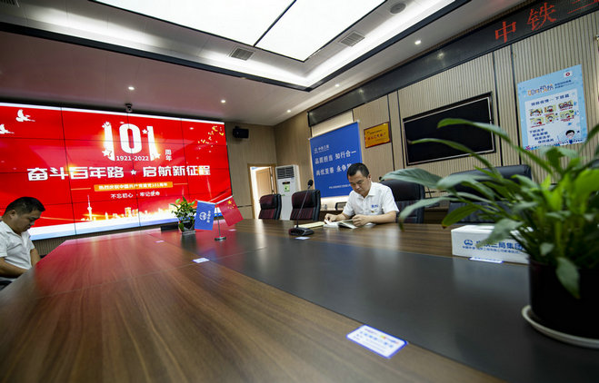 中鐵三局線橋公司第五分公司黃黃項目“迎七一”主題黨日講好黨課增動力活動現(xiàn)場