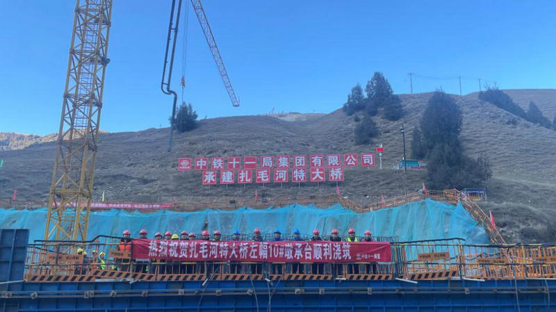 11月7日5時40分,中鐵十一局同賽項目的建設者們歷經(jīng)38小時的連續(xù)奮戰(zhàn),隨著最后一方混凝土的注入,扎毛河特大橋左幅10#墩承臺澆筑完畢,標志著項目施工取得了階段性勝利,為扎毛河特大橋后續(xù)墩身施工建立了堅實的基礎。