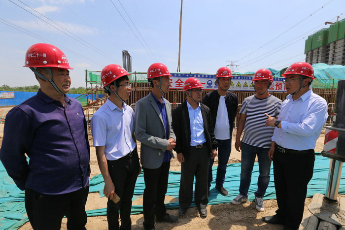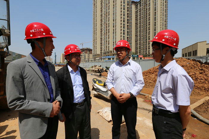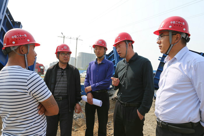 圖為項(xiàng)目部領(lǐng)導(dǎo)與現(xiàn)場技術(shù)人員交談