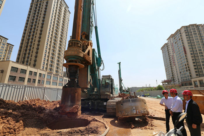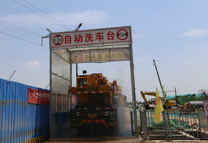 為認(rèn)真執(zhí)行鄭州市“八個百分之百”環(huán)保要求規(guī)定,項(xiàng)目部安質(zhì)部長冷增鑫說:“我們對施工現(xiàn)場圍擋全封閉,覆蓋現(xiàn)場物料和裸露黃土,配備了土方開挖濕法作業(yè)機(jī)械,硬化施工路面,施工出入口安裝洗車臺,安裝揚(yáng)塵監(jiān)測系統(tǒng)和環(huán)境監(jiān)控系統(tǒng)接入政府相關(guān)部門,嚴(yán)格檢查渣土車密封和非道路移動機(jī)械是否達(dá)標(biāo),確保施工符合環(huán)保要求。”