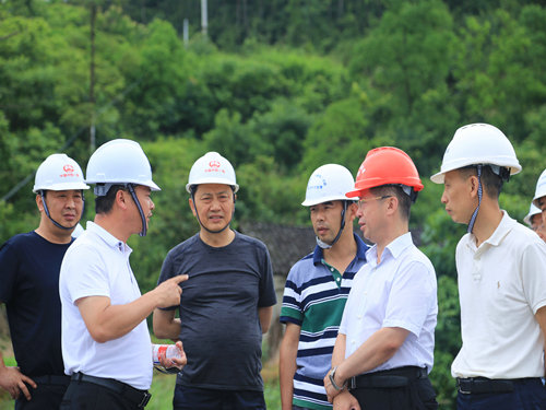 杜立新(左三)現(xiàn)場(chǎng)詢問(wèn)施工相關(guān)情況