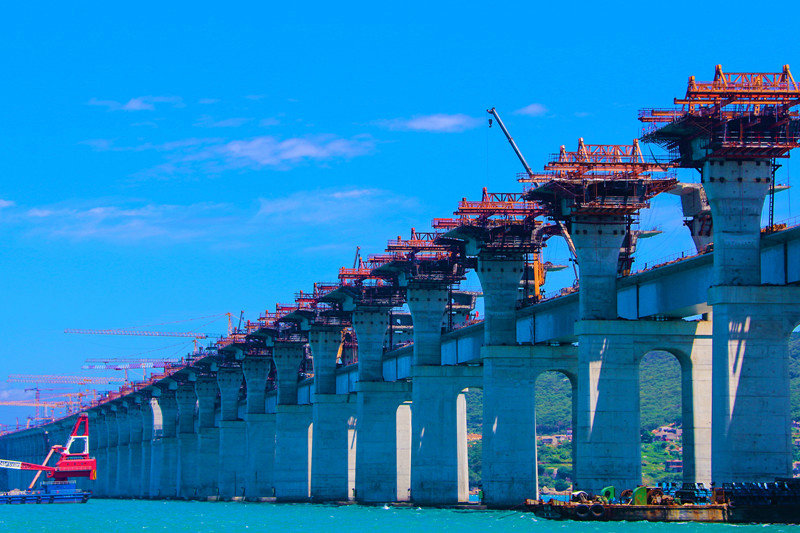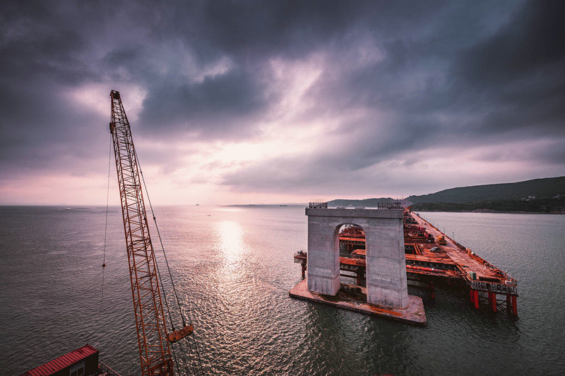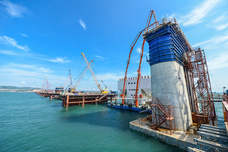 面對(duì)惡劣的海況,建設(shè)者沒(méi)有畏懼,以科技創(chuàng)新為手段,攻堅(jiān)克難,最終圓滿完成使命。截至2019年7月,中國(guó)鐵建大橋工程局集團(tuán)依托該項(xiàng)目已獲得科技進(jìn)步獎(jiǎng)9項(xiàng)、工法19項(xiàng)、授權(quán)專利21項(xiàng)、其中9項(xiàng)為發(fā)明專利、QC成果3項(xiàng)、核心期刊發(fā)表論文近40篇。在全體參建者的共同努力下,成功攻克了“國(guó)內(nèi)首臺(tái)臺(tái)風(fēng)區(qū)雙控連做造橋機(jī)”“深水裸巖組合平臺(tái)的搭設(shè)與穩(wěn)固”“深水裸巖大跨長(zhǎng)距重載棧橋的搭設(shè)”“大噸位整體鋼吊箱設(shè)計(jì)與施工”“臺(tái)風(fēng)區(qū)碼頭與后場(chǎng)配套設(shè)計(jì)與施工”等多項(xiàng)技術(shù)難題。