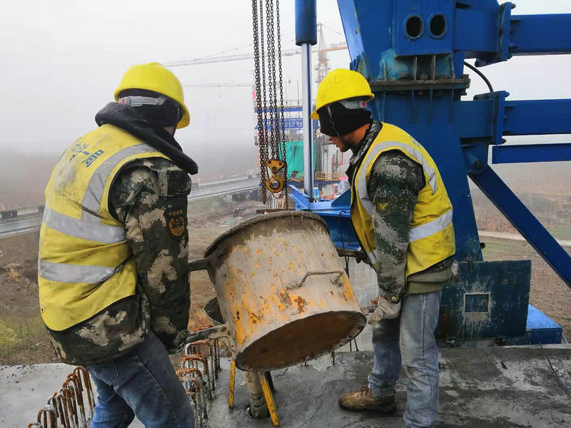 元旦過(guò)后,濟(jì)寧地區(qū)也迎來(lái)新年初雪。從1月5日下午便開(kāi)始落雪,白雪皚皚給大地披上了銀裝,也給工地上那兩套鋼鐵巨獸般的運(yùn)架設(shè)備添上一層厚厚的羽絨棉被。颯颯的風(fēng)雪聲中冬季的濟(jì)寧分外凜冽,在零下十多度的嚴(yán)寒中,為護(hù)航高鐵暢通,分部員工沒(méi)有絲毫松懈。元月初此時(shí)正值魯南高鐵項(xiàng)目實(shí)現(xiàn)年度架梁目標(biāo)最后奮起一躍的時(shí)刻,為在春節(jié)前順利完成年度箱梁架設(shè)任務(wù),項(xiàng)目部全體員工凝聚在“全力以赴保安全、爭(zhēng)分奪秒保進(jìn)度、排除萬(wàn)難保質(zhì)量”的信念下,寒冬臘月不停歇,堅(jiān)守崗位,頂著數(shù)九寒天的凜冽寒風(fēng),齊心協(xié)力打響春節(jié)前箱梁架設(shè)攻堅(jiān)戰(zhàn)。