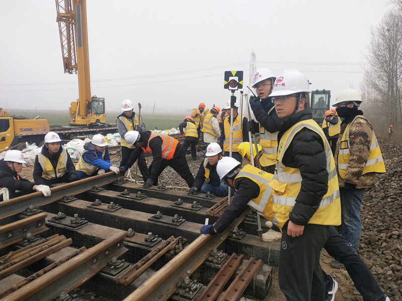 12月17日,魯南高鐵項(xiàng)目鋪軌基地聯(lián)絡(luò)線與梁寶寺煤礦專用鐵路接軌施工,天氣寒風(fēng)刺骨,像針一樣穿透心靈,這鬼天氣,路邊的行人已經(jīng)絕跡了,飛鳥(niǎo),走獸,消失的無(wú)影蹤。經(jīng)過(guò)現(xiàn)場(chǎng)90人240分鐘的奮戰(zhàn),魯南高鐵項(xiàng)目鋪軌基地順利完成梁寶寺煤礦專用鐵路插鋪無(wú)尖軌道岔施工任務(wù)。數(shù)九寒天,施工現(xiàn)場(chǎng)陣陣朔風(fēng)透骨寒,作業(yè)人員穿戴齊全,按照事先分配好的工作密切配合,有條不紊的完成各道工序,拆軌裝軌、勻砟整修,整個(gè)施工過(guò)程,全體作業(yè)人員發(fā)揮了路橋人特有的能吃苦,能戰(zhàn)斗,能奉獻(xiàn),能打硬仗的工作作風(fēng),以實(shí)際行動(dòng)出色的完成了道岔插鋪任務(wù)。