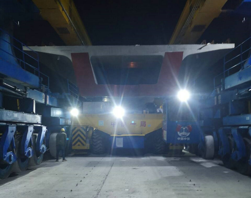 小里程方向架梁任務(wù)順利完成后,需要對(duì)架橋機(jī)進(jìn)行轉(zhuǎn)體調(diào)頭作業(yè),繼續(xù)完成大里程方向箱梁架設(shè)。運(yùn)架設(shè)備轉(zhuǎn)體調(diào)頭耗時(shí)耗力,項(xiàng)目部組織夜晚值班人員雙班倒,最大程度降低設(shè)備調(diào)頭時(shí)間。漆黑的夜里刺骨的風(fēng),穿著臃腫包裹嚴(yán)嚴(yán)實(shí)實(shí)的夜間作業(yè)人員在搖曳的燈光下隨著運(yùn)架設(shè)備緩緩向著梁場(chǎng)方向返回,三九嚴(yán)寒,滴水成冰。凌晨4時(shí),運(yùn)架設(shè)備在經(jīng)過(guò)18個(gè)小時(shí)的長(zhǎng)途跋涉下順利返回梁場(chǎng)。此時(shí),在場(chǎng)的所有人雙眼都充滿了血絲,這些寒夜中的身影,雖然被凍得瑟瑟發(fā)抖,依然沒(méi)有絲毫懼色,而是堅(jiān)持到底。參與值班員工在零下十幾度的天氣中加班加點(diǎn),超負(fù)荷工作。以忘我的精神、飽滿的熱情、高昂的斗志,全面加快架梁施工進(jìn)度。