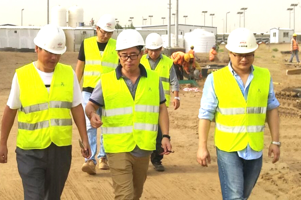 4、中鐵十八局集團(tuán)沙特公司黨工委書記、總經(jīng)理陳德斌(右二)在現(xiàn)場辦公(徐名峰 伍振 攝)