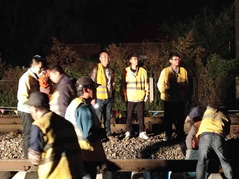 當落日的余輝已盡,當喧囂的車流豐富,軌道工區(qū)卻是剛剛端起飯碗。冬冷夏燥的板房內吳佰峰和馬鐵、孫海龍等人整理著當日的工作日志,研究著第二天的施工細節(jié),如何注意安全,如何更有效地安裝扣件……