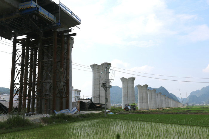 “六太雙線特大橋共133跨,最難干的就是樁基,是8標(biāo)段施工最難的橋,從30~121#墩,都是在村民的水稻田里,溶洞特別多,施工樁基地質(zhì)塌孔非常嚴(yán)重。”熊寧告訴記者。