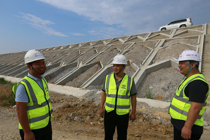 黃炬銀(左一)與常務(wù)副經(jīng)理衛(wèi)福星(中)、副經(jīng)理(何帥)在工地黃炬銀是一個(gè)對(duì)技術(shù)工作一絲不茍,尤其是對(duì)高難度工程,抓質(zhì)量抓規(guī)范施工親歷親為。他不顧五十多度的高溫,下到連續(xù)梁腹板內(nèi)對(duì)掛籃移動(dòng)、模板安裝、鋼筋焊接、鋼筋間距等檢查才放心。他說(shuō):“鋼筋焊接不牢、間距差一點(diǎn)都會(huì)對(duì)梁的受力結(jié)構(gòu)產(chǎn)生重大影響,絲毫馬虎不得。”2021年7月24日,紅渡紅水河特大橋連續(xù)梁順利合龍,這一全線重點(diǎn)控制工程獲得圓滿突破,業(yè)主專門給公司發(fā)去賀電祝賀。