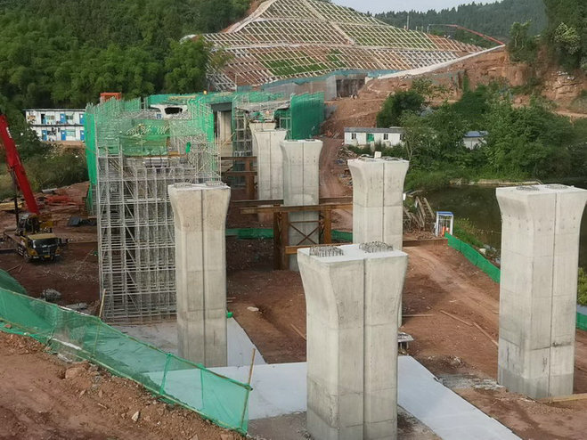 成都地鐵資陽輕軌高墩為確保掛籃節(jié)段懸澆過程中的安全質量,殷盛林與項目經(jīng)理王軍、總工程師鄒森對施工工藝進行了一系列技術革新。制訂了“四支河特大橋連續(xù)剛構關鍵工序技術控制要點檢查證”施工方案,分工序,定責任人,確保每道工序按要求檢查整改完成后再進行下一道工序施工;為便于內模安裝拆除,他們自行設計了內模鋼支架,和掛籃同步前移,將上倒角處設置成鉸接狀態(tài),大大縮短了內模的安裝拆卸時間;因高墩鋼筋密集,薄壁空心墩橫斷面設計布置了364根Φ32的螺紋鋼,為確保鋼筋骨架安裝的垂直度以及受力鋼筋的間距,在每節(jié)墩身施工時預埋鋼筋安裝勁性骨架,通過勁性骨架固定鋼筋,防止鋼筋偏移確保垂直度。