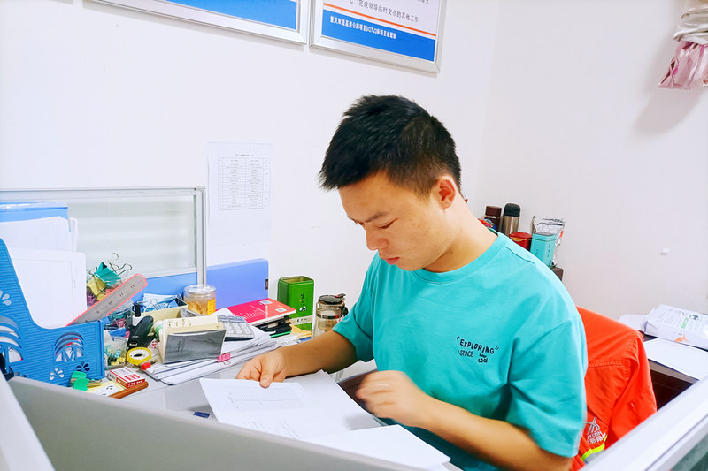 當(dāng)清晨的第一縷陽光照在大地上,一群忙碌的身影已在施工現(xiàn)場穿梭,其中一道走路健步如飛的身影便是王盼盼。1995年5月出生的他,現(xiàn)在已是該標(biāo)段工程部的一員得力干將,笑容真誠、“憨憨”的樣子,是同事們對(duì)他的第一印象,辦事踏實(shí)認(rèn)真,工作手腳麻利,是他工作中的真實(shí)寫照。