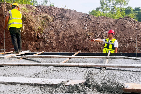 “走走走,上工地了,有沒有一起去工地?”只見勞資員徐美惠穿著反光背心、戴著安全帽、拿著筆記本“噔、噔、噔”的從二樓下來了……