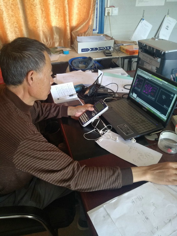 圖為周成興在加班整理資料一開始,周成興不會操作電腦都,字也不會打,更別提在電腦上畫圖、使用軟件及藍牙技術了。面對困難,周成興憑著鐵道兵那股敢拼敢闖的精神,通過半年多時間的不懈努力,他不僅學會用五筆打字,而且學會了在電腦上畫圖,使用測量軟件,大大提高了測量工作效率。