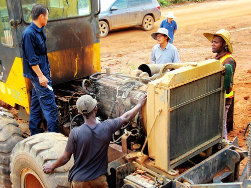 工程開工后,孫金輝帶人日夜組織,很快建立起了拌合站,組織各種機(jī)械設(shè)備進(jìn)場。根據(jù)國外工程項(xiàng)目的設(shè)備管理模式,各種大型機(jī)械設(shè)備均需到租賃,維修保養(yǎng)則由施工單位負(fù)責(zé)。由于所租賃的老舊機(jī)械設(shè)備比重大,屬地雇員責(zé)任心普遍欠缺等原因,導(dǎo)致機(jī)械設(shè)備的完好率、出勤率一度很低。“個別屬地雇員不能認(rèn)識到機(jī)械設(shè)備對工程進(jìn)度的重要性,簡單的以工時換取工資,甚至?xí)萌錾匙?、裝泥土、填爛布等行為毀損機(jī)械。”說起賴以怠工、故意損毀設(shè)備的行為,孫金輝十分苦惱。不同于國內(nèi),可以借助于技術(shù)支持和廠家服務(wù),國外項(xiàng)目的設(shè)備管理需要獨(dú)辟蹊徑,自己想辦法才能解決。