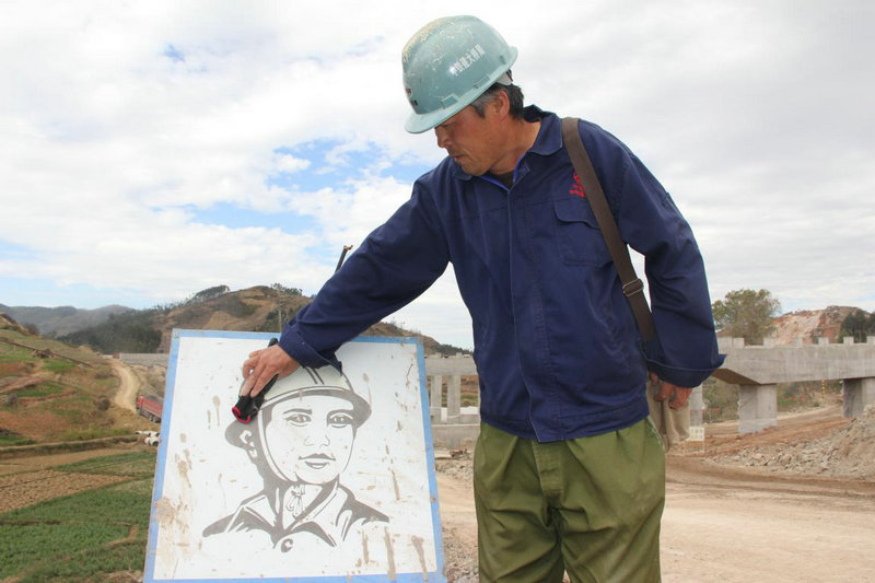 每次去采訪陳叔,想給他拍一張照片,總被他拒絕,他總說:“我沒啥好宣傳的,把宣傳的機會給你們年輕人吧,你們這些大學(xué)生才是最不錯哩。”聽到這句話,我心里很慚愧,更加由衷的尊敬他,他才是最值得宣傳的楷模。他把所有的青春和熱血灑在工地上,他對工作愛的深沉。