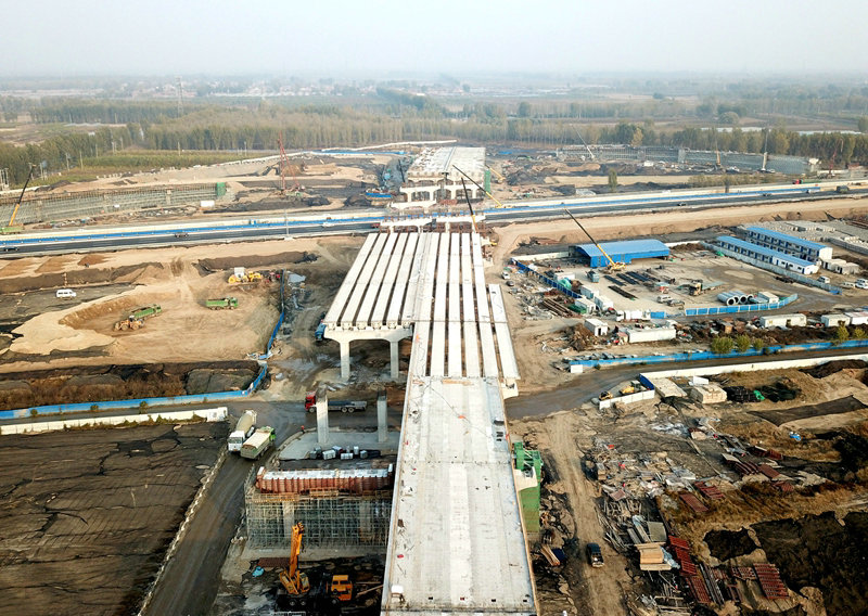 北京新機(jī)場(chǎng)北線繁忙的施工現(xiàn)場(chǎng)
