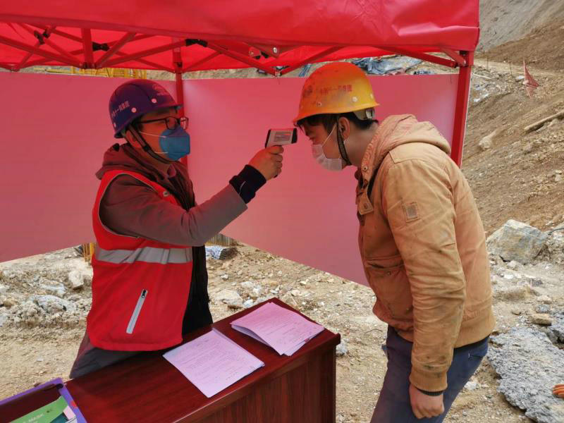 白杰為職工監(jiān)測體溫