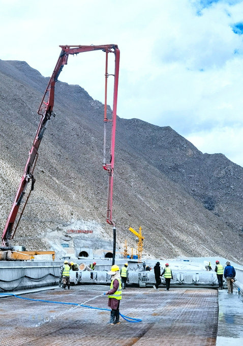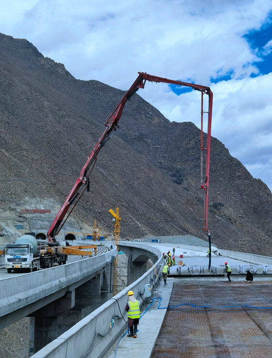 鐵路工程建設(shè)網(wǎng)訊(通訊員馬軍鵬)中鐵十五局集團(tuán)雅葉高速拉日十標(biāo)項(xiàng)目雅魯藏布江大橋位于拉薩市尼木縣卡如鄉(xiāng)卡如村西側(cè)約700米,跨越雅魯藏布江。大橋?yàn)樽笥揖€分離式,單幅橋?qū)?2.75米,公路等級(jí)為高速公路雙向4車道,設(shè)計(jì)速度100km/h,車輛荷載等級(jí)為公路Ⅰ級(jí)。橋梁下部結(jié)構(gòu)采用柱式墩、實(shí)心薄壁墩、空心薄壁墩、雙肢等截面矩形實(shí)體薄壁墩,橋臺(tái)為樁柱式橋臺(tái),基礎(chǔ)結(jié)構(gòu)為樁基。左線橋梁全長(zhǎng)734.5m,右線橋梁全長(zhǎng)725.5m。其中主橋采用變截面預(yù)應(yīng)力混凝土連續(xù)剛構(gòu),兩岸引橋結(jié)合地形條件采用30m預(yù)應(yīng)力混凝土先簡(jiǎn)支后橋面連續(xù)小箱梁和40m預(yù)應(yīng)力混凝土先簡(jiǎn)支后橋面連續(xù)T梁。兩岸橋墩位于河谷兩岸陡峭的山坡上,墩身較高、現(xiàn)澆段跨度較大,安全風(fēng)險(xiǎn)較高。大橋與4月底架通,目前正進(jìn)行橋面鋪裝施工。