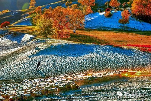 一夜秋風千山披霞,一夜秋風萬水綠透,一夜秋風金銀滿溝,紅風飛舞滿天飄金的時節(jié)。