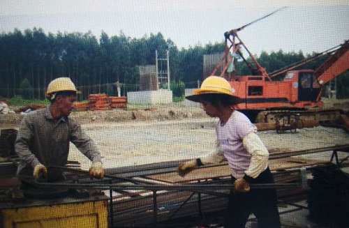 我真不想用“黑牡丹”這個(gè)詞來(lái)形容她們,但我又找不到更為恰當(dāng)?shù)脑~語(yǔ)來(lái)贊美她們,施工現(xiàn)場(chǎng)的風(fēng)吹日曬,給她們臉上涂抹的就是日漸變黑的大自然牌“化妝品”。這照片上的四個(gè)姐妹,從左向右依次為農(nóng)瑞娟26歲、黃光邊39歲、農(nóng)桂洪46歲、何文波25歲。她們從云南來(lái)工地快半年了,除了下雨天不施工外,很少有人缺勤。