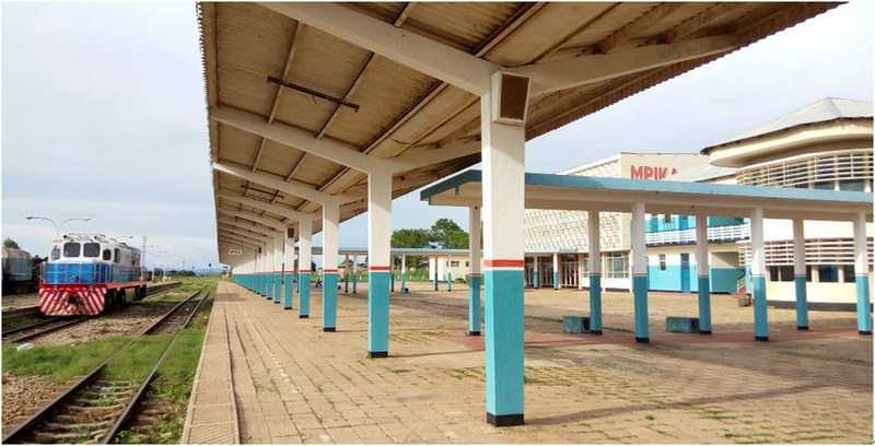 我們在贊比亞的姆皮卡市附近有一個在建的施工項目,而坦贊鐵路途經(jīng)姆皮卡設(shè)立的火車站屬于一個較大的火車站。項目營地離這個火車站不遠,因此我們利用主題黨日的活動參觀了這個火車站,走走坦贊鐵路線去追尋這段紅色的歷史足跡。當日晴空萬里、陽光明媚,懷著期待的心情,經(jīng)過半個多小時的車程,我們來到了姆皮卡火車站。映入眼簾的是正面的站前大樓,在上方的前墻上很醒目地寫著紅色的MPIKA這個單詞,候車廳和售票廳都集中在這個樓內(nèi),大樓前面的做綠化的草坪修剪的非常的干凈利索,看起來非常的舒適、清新自然。