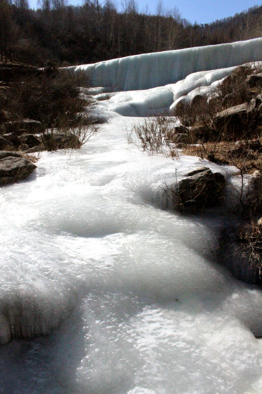 六七十年代,駝梁山地區(qū)冬季氣候異常寒冷,數(shù)九天的氣溫可達零下30多度,滴水成冰。男人的胡子掛滿霜花,遠看像白胡子老頭。村邊有一條小河,氣溫零下幾度便開始結(jié)冰,隨著氣溫的不斷下降,小河里的冰層逐漸增厚,最厚的地方可達2米。自然環(huán)境形成的景觀,成為我們小孩的樂園。學校沒有鍛煉身體和娛樂設施,像籃球、羽毛球、乒乓球等可望而不可及。閑暇時間,年幼的我們需要一個活動場所來滿足好動、貪玩的心理。所以每年隆冬,小河里的冰能承受一個人的重量時,便可在上面盡情地玩耍。男孩子比女孩子玩性大,轉(zhuǎn)眼工夫,便悄悄地帶上加工好的“冰車”和掌控方向的冰錐,到冰上玩了。年齡相仿的孩子們追捉打鬧,嘻嘻哈哈,開心極了。
