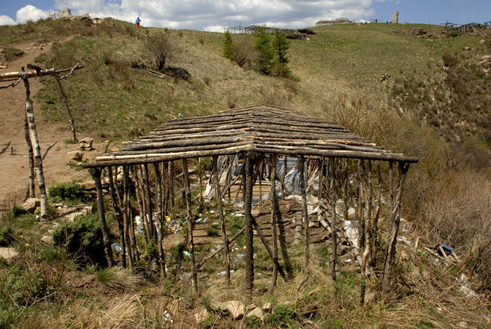 亂建的棚子和倒地的松樹