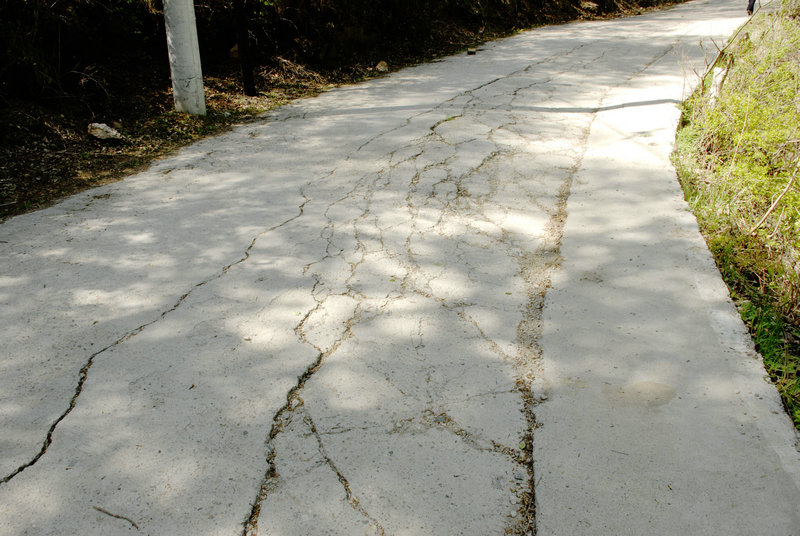 破損的路面從駝梁山的情況來看,當(dāng)?shù)卣@種選擇式的、引資式的、走走看看式的思維模式不可取,雷聲大雨點小、縮手縮腳、“缺胳膊短腿”的現(xiàn)狀,都是短視的,達不到期望的效益。10多年前便吆喝要開發(fā)駝梁山,引資兩三千萬硬化了一段4.5米、一段為2.5米的路面,建起了索道,將通往景區(qū)的2.5米寬的5公里路面加寬1米,建了幾處人造景觀。去年縣政府投資近1500萬元將與省道鏈接的一段6米寬、8.9公里長的路面鋪上了瀝青混凝土。這段路的施工質(zhì)量令人堪憂,建成通車的部分路段瀝青鋪的太薄,而且呈波浪式,車子在上面行駛顛簸的厲害,人不舒服。再說這段改建路,地形平坦,沒征地拆遷阻力和難度,但有幾處路段本應(yīng)該是筆直的,卻平添了幾道彎,既不美觀,也給車輛行駛埋下安全隱患。修路是為民造福的大事,好事辦好了,沿途群眾受益匪淺,一條平整如鏡的路,給往返于旅游區(qū)的車輛和游客帶來的舒適感難以忘懷。狐??诖迮c省道接壤的地段有三四百米,因征地拆遷未協(xié)商妥而擱置,成為制約景區(qū)交通的瓶頸。從景區(qū)材林村到狐裕口全長20公里,只改造不到9公里,其余地段沒下文了。改造前的路是10年前硬化的,澆筑路面的季節(jié)時值深秋,夜晚氣溫零下幾度,施工隊沒采取防凍措施,加上交通部門監(jiān)管不力,投入使用不久便出現(xiàn)蜂窩麻面,行駛的車輛仿佛在震動板上運動,只得減速慢行,游客和路人叫苦不迭。