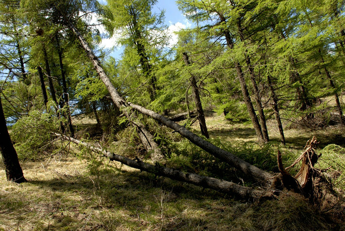 被大風(fēng)吹倒的松樹