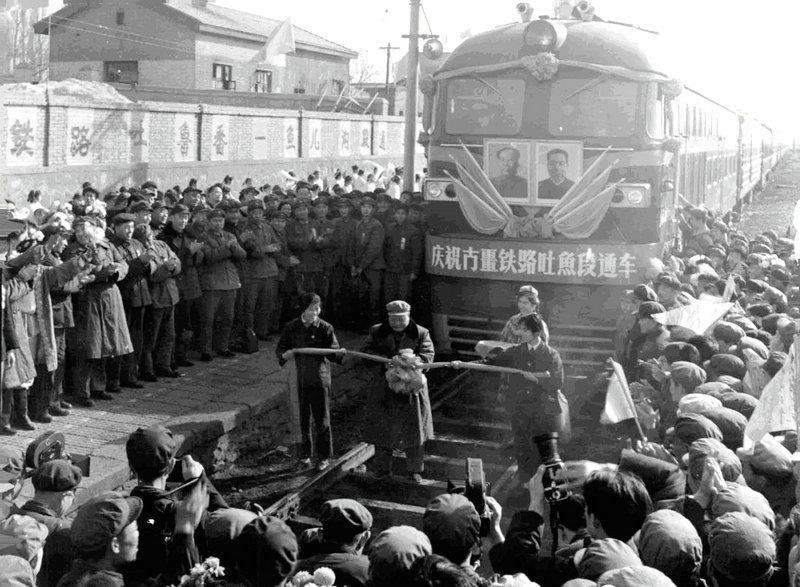 1979年8月,隧道全面完工,我們連轉(zhuǎn)入人工生產(chǎn)道砟階段。使用的工具是鐵叉、鐵錘、鐵鉤,要將堆成山的隧道棄渣加工成3—7厘米的路基專用砟,一個(gè)人每月也能敲打出20多立方,最多時(shí)達(dá)30多立方。待道砟基本滿足路基需要后,集中人力給路基上道砟、整道。在軌道上推著裝滿兩籮筐道砟的兩輪車,沿路鋪?lái)?,一部分人輪起十鎬砸道、用鐵棍撬動(dòng)鋼軌。人多力氣大,沒(méi)多久便完成了三營(yíng)管區(qū)隧道出口端路基上砟整道任務(wù)。1981年夏,11連和15連離開隧道出口,前往塔什店境內(nèi)的隧道進(jìn)口突擊完成10多公里線路的鋪?lái)暮驼拦こ?。這項(xiàng)任務(wù)畫圓后,遷至庫(kù)爾勒東站,人工開挖1米—6米深的暖氣、自來(lái)水和雨污水管溝,安裝管道,平整車站地面、澆筑混凝土,勞動(dòng)強(qiáng)度很大,每天劃分給班排的任務(wù)又落到人頭,鹽堿土,很硬,鐵鍬和十鎬開挖很費(fèi)勁,但無(wú)價(jià)錢可講,當(dāng)天的任務(wù)必須當(dāng)天完成。
