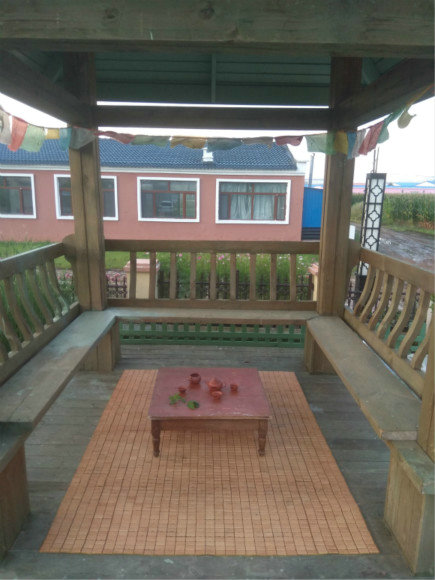 翻舊物,尋出一方竹編麻將涼席。除灰塵,清污垢,平鋪亭間。又找到一個多年未用的小炕桌,清水凈面,調(diào)平四腳,置于涼席上。紫砂壺,青瓷盞,功夫杯,一應(yīng)茶具。
