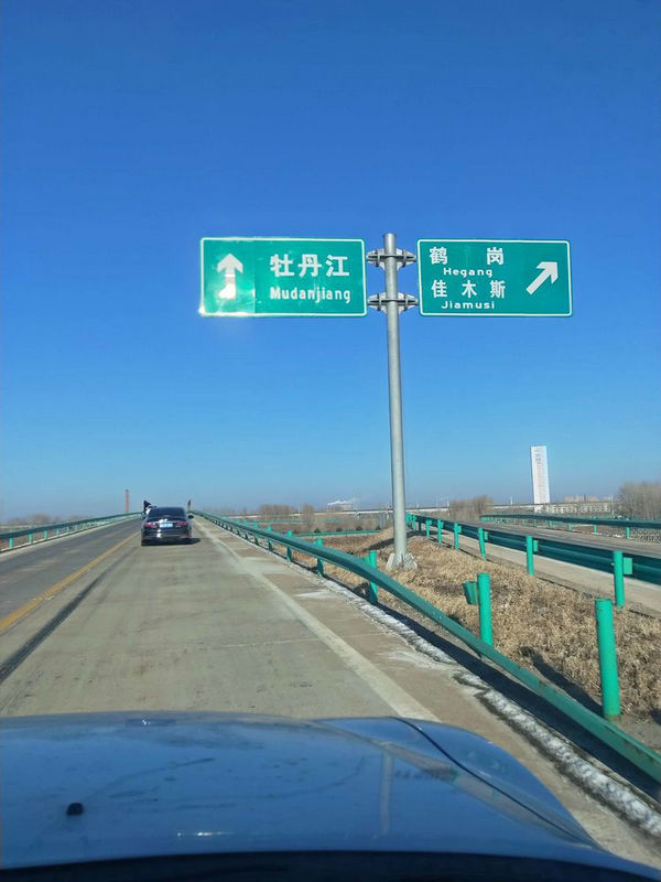在返回路過(guò)佳木斯市區(qū)的高速公路上,我用手機(jī)抓拍的一處三個(gè)地名的路標(biāo)指示牌,即佳木斯、牡丹江和鶴崗市,這三個(gè)城市的名字剛映入我的眼簾,我的心情宛如打翻的五味瓶,情不自禁的流下兩行眼淚。