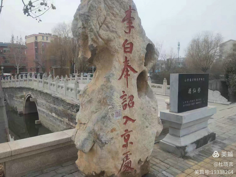 在濟(jì)寧市兗州區(qū),每日出入,八百米路程總在酒仙橋畔稍停。青石板上“李白奉詔進(jìn)京處”的碑刻,如盞長明燈,照見我這后輩,也映著千年前的詩魂。