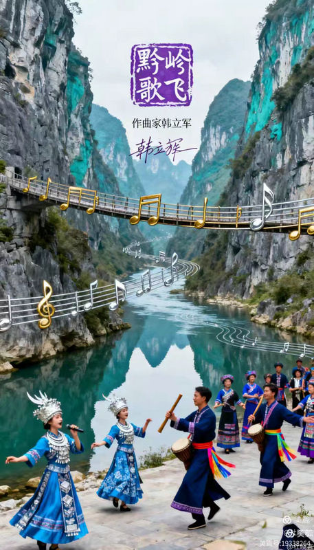 寫下《黔嶺飛歌》的最后一句“每寸土地都含笑”時,窗外正飄著初秋的細雨,恍惚間竟與許多年前和韓立軍老師合作《苗寨等你來》時的場景重合——同樣是為貴州而歌,同樣是在對這片土地的眷戀里,打撈最鮮活的民族記憶,也同樣懷揣著“讓旋律扎根民族土壤”的共同創(chuàng)作初心。