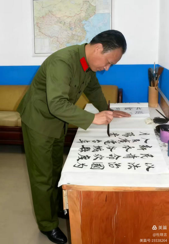 軍營是淬煉成鋼的熔爐,亦是點亮文心的星火。后勤倉庫的哨位上,寒來暑往,我守護著前線的“糧草命脈”,目送載滿鋼軌水泥的車輛駛向崇山峻嶺,那份“守一方陣地,護一線補給”的責(zé)任感,如磐石般在心底扎根。戰(zhàn)友們的文學(xué)熱忱,恰似暗夜中的微光:同鄉(xiāng)戰(zhàn)友分享的小說篇章、燈下?lián)]毫的書畫作品,讓僅讀過七年書的我,心底燃起了自學(xué)寫詞的渴望。深夜?fàn)I房的窗口,路燈灑下柔和的清輝,驅(qū)散了夜色的寒涼,我趴在枕頭上,將站崗的堅守、戰(zhàn)友的情誼、鐵道兵的擔(dān)當(dāng),化作一行行滾燙的詞句,文字便成了軍旅歲月最珍貴的注腳。