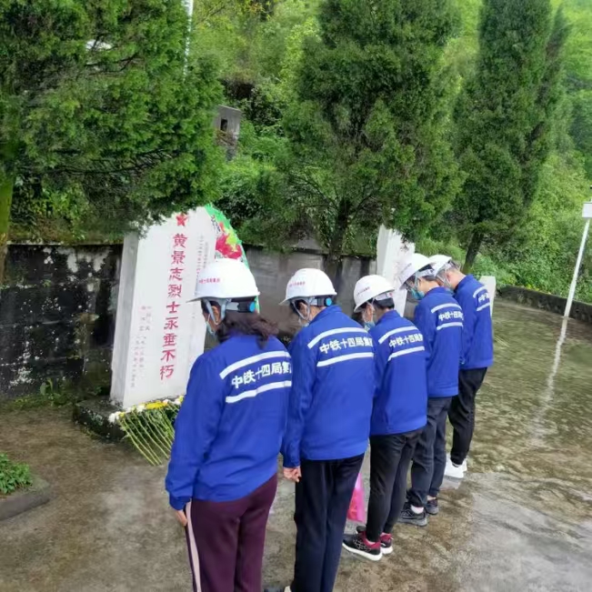 疫情期間的清明節(jié),中鐵十四局集團(tuán)五公司重慶地鐵項(xiàng)目部員工代表祭奠鐵道兵烈士黃景志