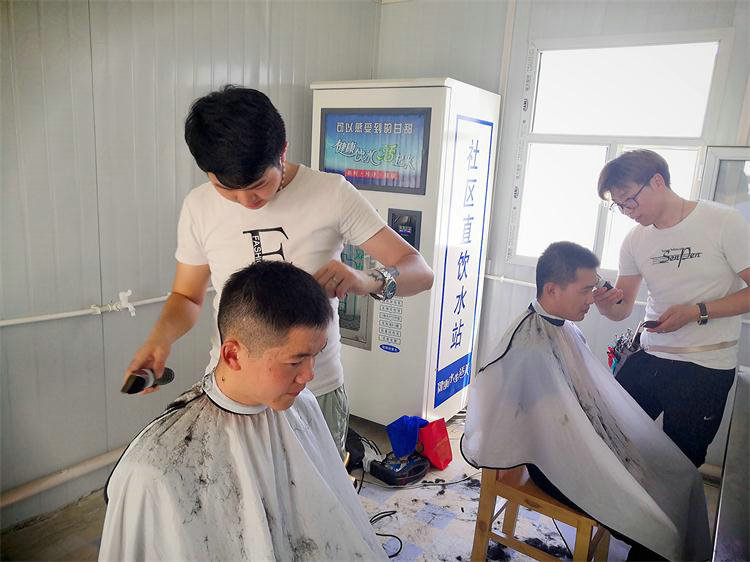 “理發(fā)事小很暖心”。繁忙的工作壓力在接近40℃的高溫中顯得格外沉重,為了解決奮戰(zhàn)在施工一線的職工出行不便理發(fā)難等問題,項(xiàng)目專門請(qǐng)理發(fā)師到離縣城百余里的各工區(qū)駐地,給有需要的員工們免費(fèi)理發(fā);此外,項(xiàng)目專門聘請(qǐng)的大師傅們每天變著花樣的為大家提供營養(yǎng)豐富的三餐,不僅讓員工吃得飽,還要吃的好,氣候環(huán)境雖然惡劣,但生活質(zhì)量上絕不能掉隊(duì)。在項(xiàng)目領(lǐng)導(dǎo)的牽掛與關(guān)懷下,大家以更加飽滿的激情全身心的投入到項(xiàng)目的工作生活中。