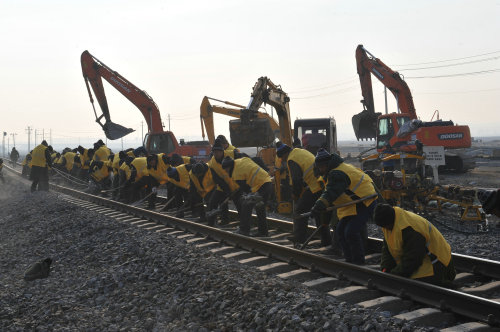 凝心聚力逐夢想,艱苦鏖戰(zhàn)破風(fēng)浪。中鐵二十三局集團(tuán)二公司哈佳鐵路項(xiàng)目部已經(jīng)成立5年,從對東佳木斯站場進(jìn)行改造到2018年9月30日全線開通運(yùn)營,再到2019年的佳木斯站新增旅客站臺(tái)工程,他們經(jīng)歷了風(fēng)風(fēng)雨雨,他們斗嚴(yán)寒、戰(zhàn)酷暑,與時(shí)間賽跑,他們敢攻關(guān)、有拼勁,與困難較量,哈佳鐵路線、佳木斯站、學(xué)府路、和平街……每一處都留下了他們的印記。眼眉流下的汗水,展現(xiàn)的是鐵建人堅(jiān)持夢想的堅(jiān)韌與無畏,鬢角處凝結(jié)的冰花,折射出的是鐵建人為民堅(jiān)守的執(zhí)著與無悔,黑夜中結(jié)伴的背影,透視出鐵路人與民同行的忠誠與擔(dān)當(dāng),讓初心在嚴(yán)寒中仍有溫度,讓使命在黑夜中亦有光芒。