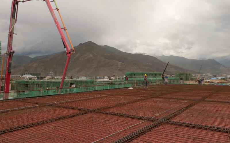 6月27日10時,隨著最后一方混凝土澆筑完成,經(jīng)中鐵二十一局四公司拉林鐵路項目部70余名施工人員歷時兩個月的艱苦鏖戰(zhàn),拉林鐵路拉薩西機務段單身宿舍順利封頂。