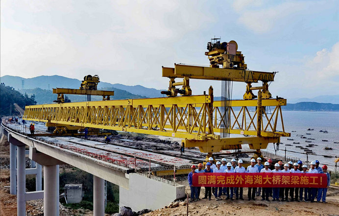 圖:外海湖大橋箱梁架設(shè)圓滿完成